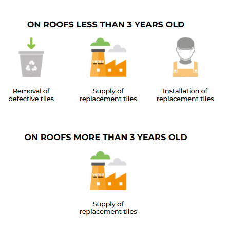 if you do not comply with these conditions, the product also has a warranty of 30 years if you install and maintain it according to UNE 136.020 and CTE. This warranty covers from removal to installation of the tiles, depending on how long they have been installed.